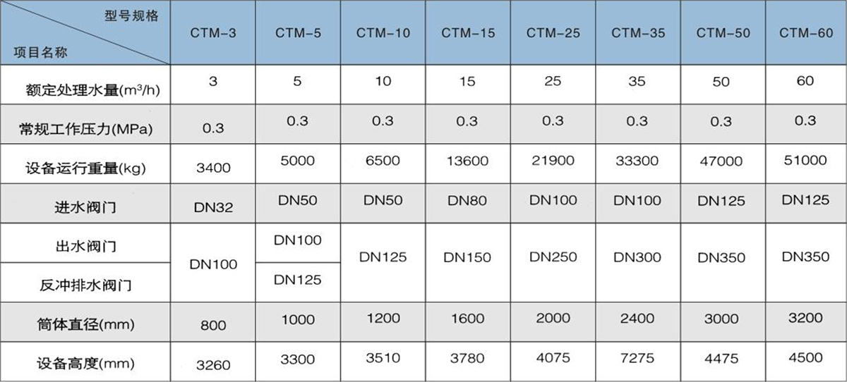 CTM除鐵、除錳過濾器適合中小城鎮、農村供水、工礦企業自來水源的地下水除鐵及工業用水軟化,除鹽工藝的預處理。